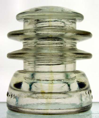 I noticed as I was putting away some sales stock at the Houston show that this lowly Hemingray CD 203 had an amber streak up the side just like the Hemingray CD 113 clear-yellow two tones. The color of this streak is the same and the date code for this piece is 1948. Has anyone else seen one of these before? This is a shot from the front. I'll also include a base shot. |