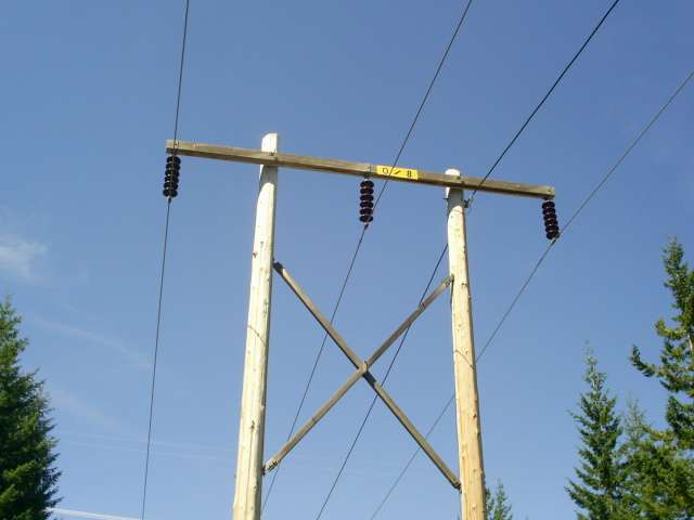 I think this is 110 kV. Maybe it's only 69 kV. It's a branch from the line shown here [id=147374698]. Goes to a sub along Burlington Northerns Stampede pass rail line. Couldn't find the sub for a photo though, only the outgoing 12 kV to the former town of Lester, now the watershed for the city of Tacoma. the 12kv also feeds various railway signal huts. anyways, this H structure has an ID of W-S on one of it's legs. Not sure what the W or S stand for. |