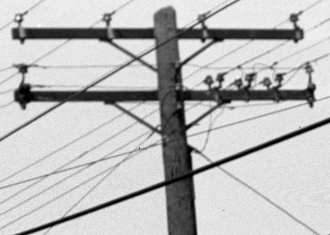 I scanned this from a streetcar negative. I would appreciate somebody sharing the CD numbers for the insulators as I am replicating one of these poles for my backyard display. I already have the clamp-on insulator pins, but need some of the distribution spread brackets.