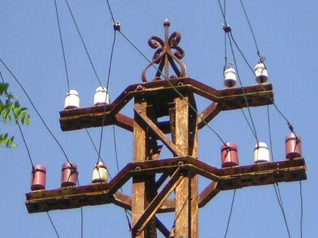 These insulators are probably plastic insulators. Seen on a pole near Chieti