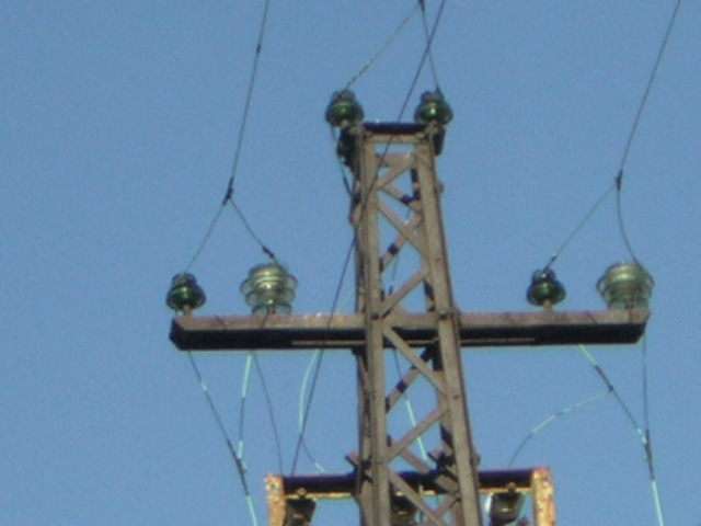 Near Sulmona, this pole with some green glass insulators type Folembray (France) n° 222 insulators, unfortunately cemented. I worked hard to cut the wires (the line was not in use) but couldn't rescue these beauties.