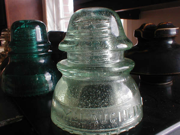 McLaughlin made a lot of good looking insulators in nice colours but nowhere near as many in champagne bubbly glass. I got this gem off of eBay for a pittance, got it home and saw how filled with seed bubbles and micro bubbles it really is, just has thousands of bubbles! Notice how the M is really a Y with legs. Pic does not really do it justice, looks much better in person! |