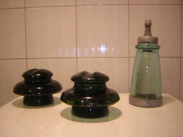 Today I drove to a place not far from Turin and got these types (left to right): MIVA 210 green glass, MIVA M 210 CA green glass, and (indoor) MIVA P 4 aqua color. In total I got 10 pcs of rare insulators for my collection and for the happiness of my friends too. |