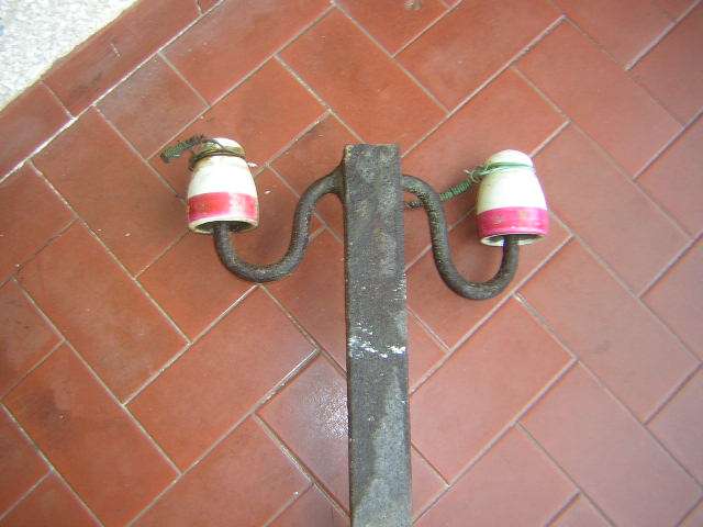 Today, after a long time, I could enter a private property and remove these insulators, with their hook, from an old wall. Thanx to the proprietor who helped me in removing them, having not a high ladder. Anyway, the insulators have been rescued and now are in my collection. I'm quite a lucky collector! |