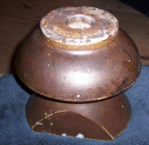 Insulators found along interurban rail bed between Kalamazoo and Battle Creek, Michigan. The big one is about 25 pounds. I think these two insulators go together and maybe one or two more as well. Just looking for comments and info. Thanks much, Chad |
