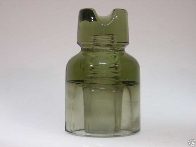 I also got this one from another seller in Italy, he says it is from Romania, the color is a sage-green, and there are some very faint "ghost"markings, too faint to read, and a small "3" embossed omn the skirt, just above the base.. Similar to a CD 537, but it has a longer inner skirt and straighter sides. I'll post a better photo and add the measurements, after it arrives - which occured on December 4th. The dimensions are: 5 1/2 inches tall, X 3 3/8 diameter base, and the "head" is 2 1/4 inches diameter. The sage-green glass is exceptionally clean and clear, only a few very tiny bubbles, update: Thanks to Zoltan for the update information on this insulator, this is from Romania, and is listed as a CD 578.2, no name, unembossed, although not listed in GIFONA, it is on the current CD list maintained by Woody.. |