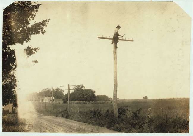 August 1916 Kentucky. Note how he has a belt and scare strap, but just hooks one leg over the arm to save time and effort.