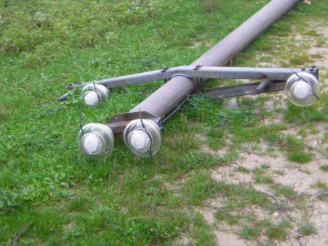 Here you see a MV pole found near Pontedera: three of the four remaining insulators, all type FIDENZA 6320 third series, have been rescued by me and my friend Aldo. Here the pole just a moment before the removal of insulators