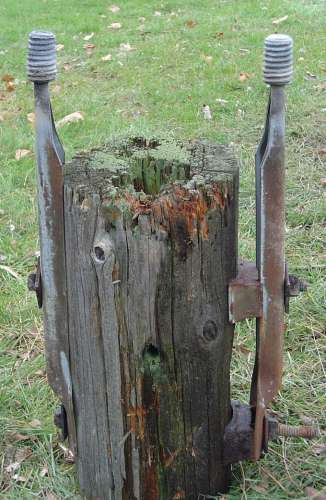 Stopped to visit with a line crew replacing a pole. Came away with this and two multiparts of interest. The pin on the left is bolted directly to the side of the pole. the other pin is installed with a spacer. Something I've never noticed before. Lou Hall has become the happy new owner ! |
