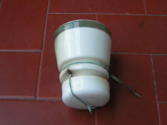 Better picture to see the top of the green striped terminal insulator rescued yesterday in Genoa: it's the only type with the top groove on the hat