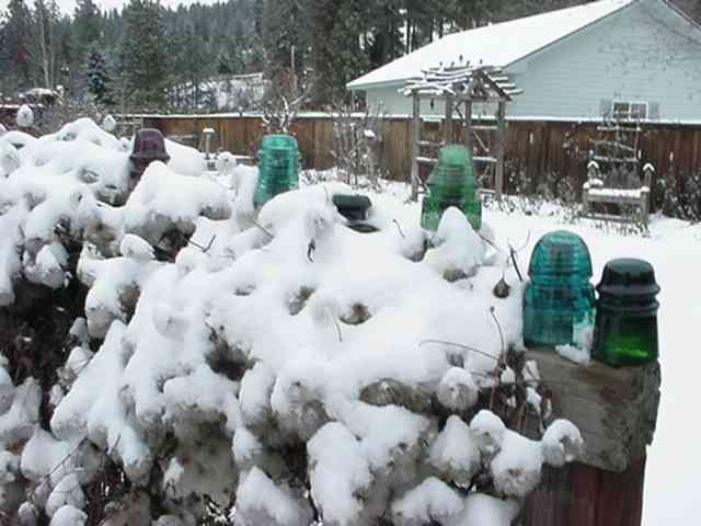 Our hitching post covered with a vine and snow. NO HORSES ALLOWED !!