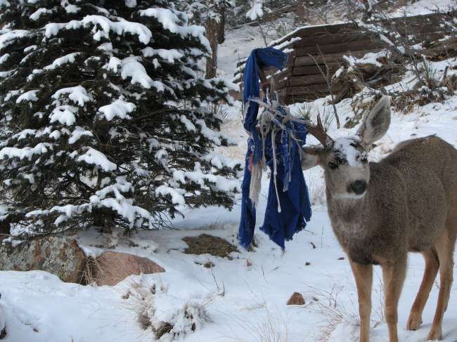 Saw this oout the back window today & thought some might get a kick out of it. Apparently he lost one of his antlers trying to get it untangled