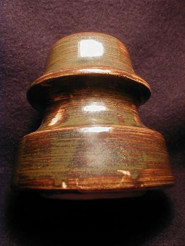Tonight as I was going thru the porcelain insulators I have I was scrutinizing this one and discovered that underneath the glaze of this piece there is a perfect fingerprint in the porcelain right down to the print pattern of their fingertip. What a rare thing this seems to be. I recall the discussion on ICON several years back about prints in glass insulators which would be humanly unbearable, but since my guess is that porcelain are cold until kiln baked, this should be quite possible. Any other collectors have any input to add on this? |