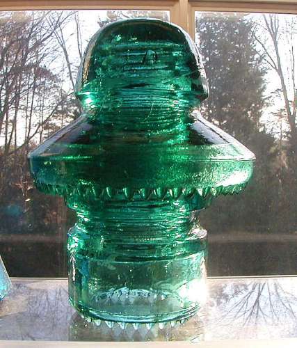 I have had the HG CO, the Heningray, and even the B 196's before. This is the first one I have had that has no embossing. Nice green aqua color. Just one nicked upper umbrella drip and two nicked on the base.