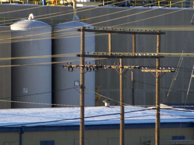 This is the first of a series of pictures showing what used to be the original main feeders coming out of the mine that fed power to the entire city of Flin Flon, Mb before the rebuild of 1973. This picture shows all of the original feeders coming out although many are not longer in use. All of these lines are soon to be torn down. |