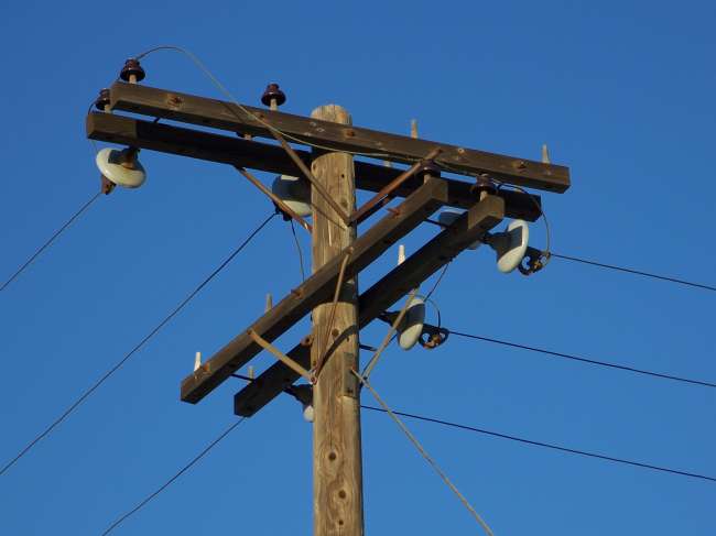 This is a pretty typical corner pole except for the use of grey disks. Not sure why these are here, but they are very scarce around this area