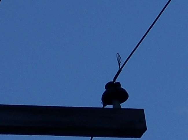 This is just a sample of how HBMS used to tie their line wire to the insulators. The HBMS linemen were not and are still not allowed to do hotwork, so when an insulator was tied in, loops were made on the ends of the tie wire so that it could be untied using a hot stick allowing the insulator to be changed hot without the lineman making any contact with the live line. |