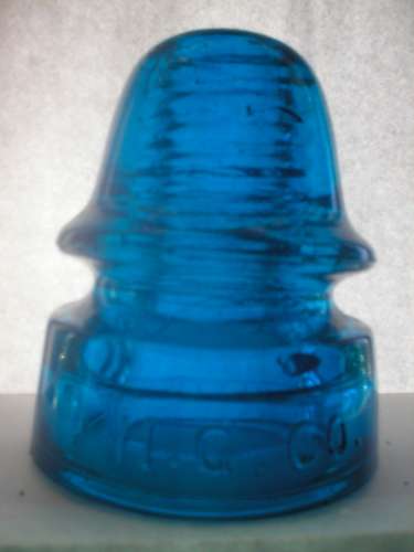 Here's a solo-photo of the slightly darker HG smooth base that is in the following photograph (the one on the left). Note that it is a tad shorter than the one on the right and has pinhole threads that nearly come out the top of its crown! FYI...as a side note...HG Co. and other earlier Hemingray insulators (pre-circa 1920) have been not-so-commonly found here in New England. That's been my experience while hunting in the wild during the past 40 years. Apparently Brookfield had the market predominantly cornered up here in the Northeast until they went out of business. That would make sense on account of less of a freight expense from most other glass insulator makers. After Brookfield's demise it was the Hemingray (Made In USA lettered) versions, Lynchburg's, Gayner's, Whitall Tatum's and so forth that we have found in this neck of the woods that apparently gained the popularity among utility users from the mid 1920s. My point is that I and other Northeastern US collectors really can appreciate these early Hemingrays because not only for their beauty but scarcity no matter what color. |