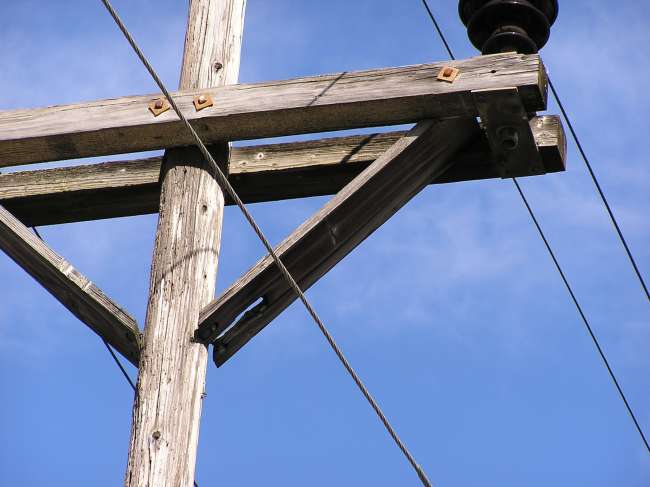 Interesting double thru-bolts in the cross arms, a relic of days gone by.