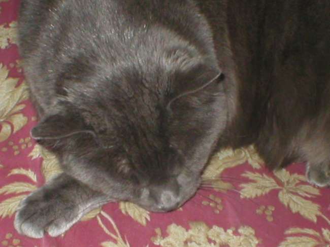 We took in Snookie as a stray in mid-2001. He is around 7 years old and has grown to be quite a big fellow! He's around 20 lbs. and on a strict diet which is not working all too well. But let me tell you that he is one very happy kitty and absolutely loves everyone and the life that surrounds him! |