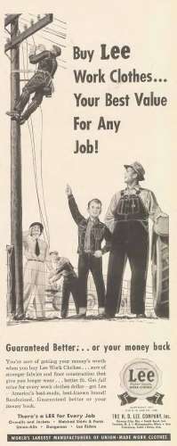 As some of you that know me in-person...I love denim! And fashion as well as good looking jeans have always been among my top-hit list. Apparently the same was true at some time during the 1950s with this lineman on the pole in this vintage ad.