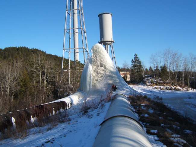 Can anyone say water leak. What a cool ice cone at a small hydro station in Novascotia.