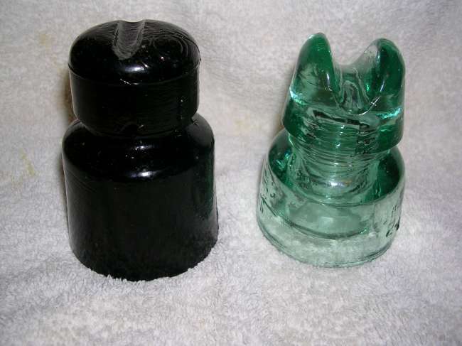 Two more from Russia (or the former Soviet Union). The unembossed, dark one to the left is an amber blackglass, and is opaque to light. It has some small flakes, and chips, and has lits of heavy straw marks. A very crude and unique piece, indeed. The "rabbit ears" is embossed with the Cyrillic letters D.B.Z. .ДБЗ, with №6 on the rear skirt. and has a decorative "spearpoint" to each side of the letters. Its larger sibling was on display at YPCIC, in Enfield CT last April 2006., and can be seen here: [id=148055827] Update July 4, 2010: It is now known (many thanks to Chris Tella) that the embossing D.B.Z.ДБЗ №1 stands for Donetsk Bottle Factory (Donetsk Butilka Zavod), which was located in Donetsk, Ukraine, also known for its coal mining and other heavy industry. The blackglass is apparently from Neman / HEMAH, in Belarus. СДЕЛАНО В СССР = Made in USSR |