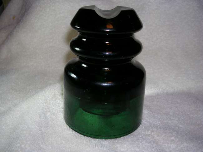 This one arrived from Italy Monday, Feb 26th. CD unknown, not listed in GIFONA. Embossed with MIVA and nothing else, no model number, etc. It does not appear in an on-line copy of a 1920's MIVA catalog. Height is 4 1/4 inches (107mm), base diameter is 3 1/8 inches (80mm). Has inner skirt and threaded pinhole. Color is a dark emerald green, typical of items produced during the 1920s &1930s. It has been cleaned with an overnight soak in oxalic acid, and some gentle scrubbing. |