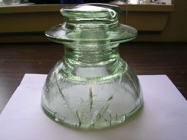 This LVIV CD 638 arrived in lots of little pieces, I managed to do a partial repair with glass glue and a lot of patience. The seller did send a mint looking replacement piece, at her own expense, which arrived intact. This one serves as an lab window decoration and paperweight . This one looked to be NOS (New Old Stock) never used, just abused by the various postal agencies. |