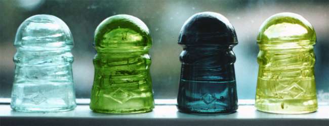 From left to right: light green, vibrant yellow green, midnight blue with teal green/amber mixture, chartreuse.
