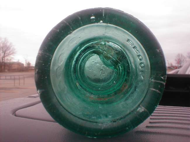 This picture shows that huge blown out bubble in the entryway of pinhole. No way they EVER got this one on a pin! Note:The bubble is bulged about 1/3rd the way out into pinhole and 100% unbroken! Also has X2 on the dome and 5 blot circles on rear skirt. |