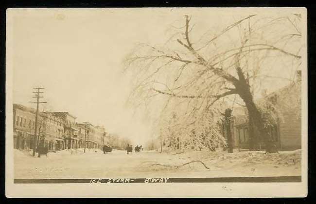 Believed to have been somewhere in New York State. Imagine the incredible weight upon individual open wires encrusted with as much as one-inch diameter ice between spans! Still fairly common to this day with winter and ice storms here in the northeastern United States. |