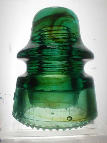 This was one of those hidden goodies in an eBay lot. Very nice narrow dome(thanks Fred!) Brookfield that is an awesome tri tone aqua, green, and amber swirl. Don't see too many of these with this kind of ambering! Oh yes, if anyone is considering asking...this piece is no longer in my posession! |