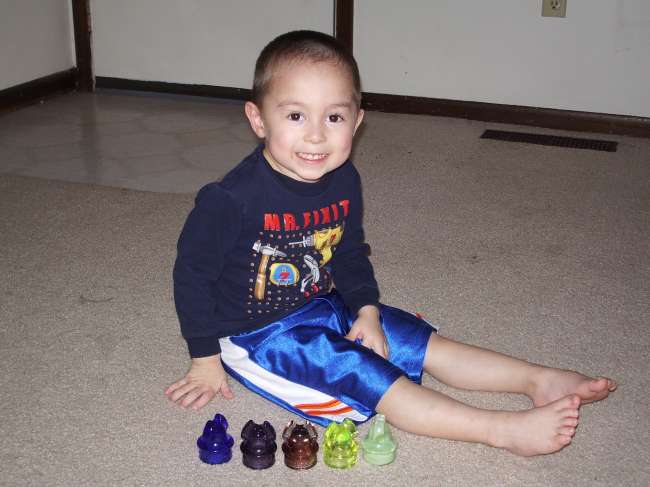 My son is now 3 and a half, has his own 15 piece collection already and yet he still covets my mini helmets....I had these tucked way up high in my closet and like a chimpanzee, he fished em out and brought em down. He wanted to hold my 206.5 Harloe claw and you can guess with 100% certainty what my answer was! I guess this fall I am gonna have to break down and buy him his own mini helmets;-) |
