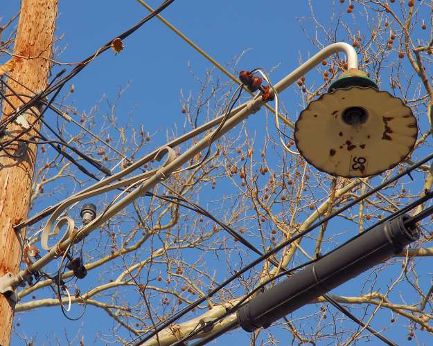 I love the light cast by these old radial wave streetlights. I hope to get back and photograph them in the night on day! Nikon D200 w/ 18-70 zoom.