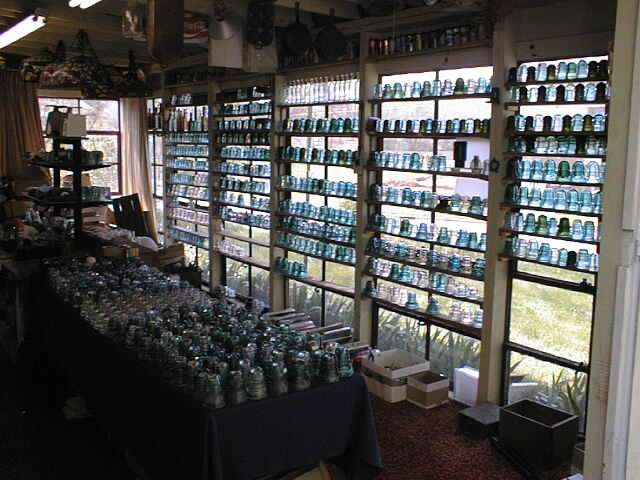 Dad added this room on the side of his wood working shop so he could have a "studio" to relax in. 28" x 18" with glass windows on two sides converted easily for my internet sales studio and a great "southern exposure" to catch the light for insulator and bottle display. |
