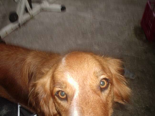 I was trying to take a picture of an insulator on the ground but Molly the Collie blocked the shot.