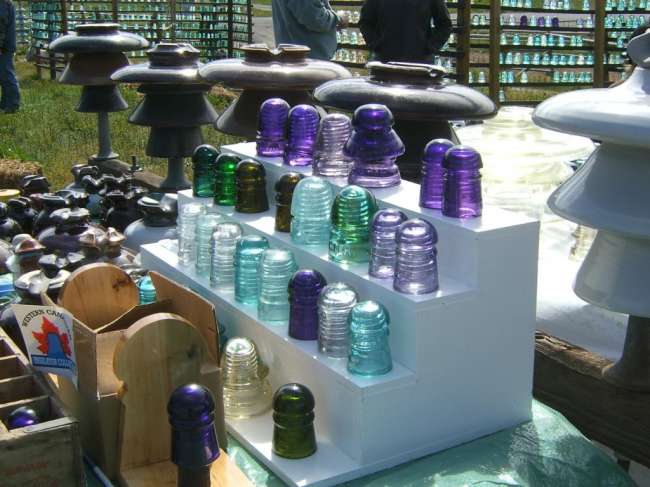 Some of the insulators brought by one of the visitors to Bob Scafe's Insulator Ranch 5-5-07 for trade or sale at the show.