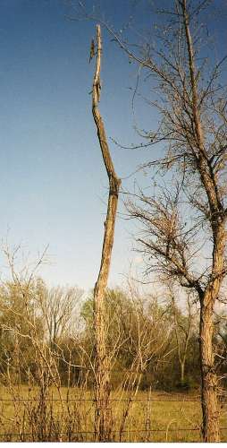 One of the more crooked ones (matches the tree). No insulators were found near it (or any other).