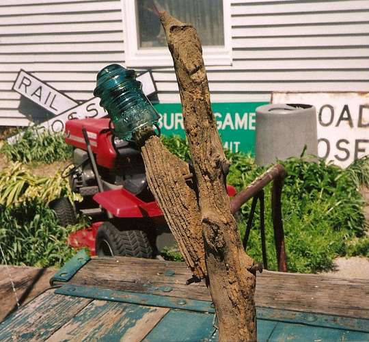 Found at a garage sale for 50 cents in my county, arround 30 miles away from where the poles are. Section of hedge pole, complete with sidepin and original CD 106 Hemingray. Same construction methods as the others.