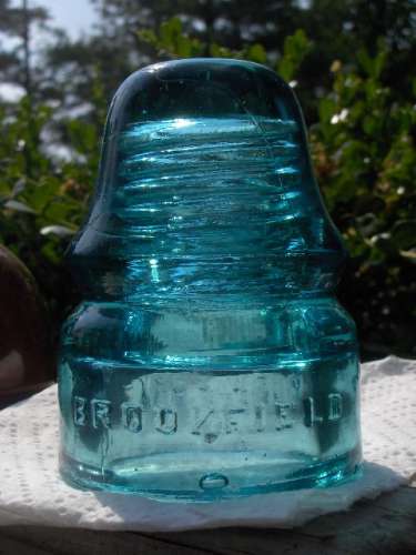 When we bought this we got it for the shape, we new it was common as dirt like most other aqua CD 133's. Well a quick soak in the acid changed our minds. This is the version with B.G.M. Co. blotted out and is listed as aqua or light lime green. Wile the color isn't a big deal and isn't really rare it's not too often i see a Brookfield with this color. It's normally some shade of dark green or light aqua along with dark aqua. Can't go wrong for $3 anyways. |
