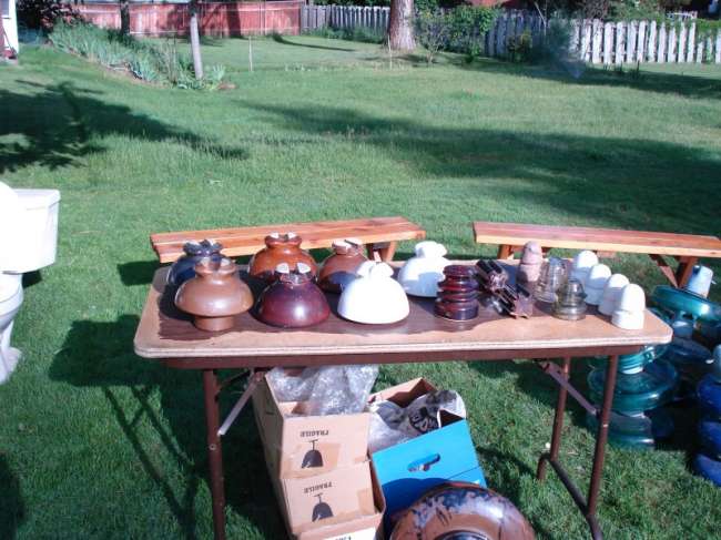 Here is a nice Table of mud and note to the far left in the photo is the rare flushing porcelain (yard toilet)He he he. Nice Insulators!