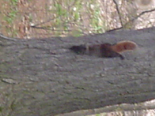 I would guess that this squirrel is either proof of Darwin's Theory of Evoultion or the Homer Simpson show with the three eyed fish caught in the cooling waters of a Nucular power plant. There are black squirrels and there are grey squirrels. There are black squirrels with grey tails and probabally grey squirrels with black tails. But, there are no black squirrels with RED tails, anywhere else that I know of. Not just one but at leas tfive of the critters. The winter of 2006 I had five of these squirrels living in the woods around my house. During the summer of 2007 they disappeared as squirrels seems to do, raising young and easy food sources result in them being less visable. The winter of 2007 saw black squirrels again in my woods, but none have red tails. Makes me wonder just a bit about living a mile downwind of a nucular refinery all my life. |