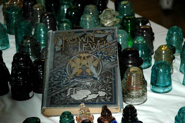 Most likely the earliest issue of Crown Jewels known, this 120 year-old, 1887 issue made an appearance at the 2007 Cayucos CA Show. It was actually a book of poetry, but it somehow looked right at home flanked by insulators.