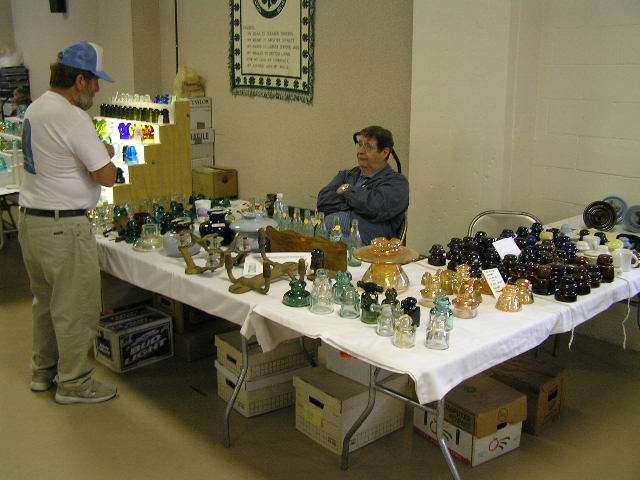 Jim brought a good selection of insulators to sell too. Here he's talking to "Fuzzy Face" Alan Stastny.