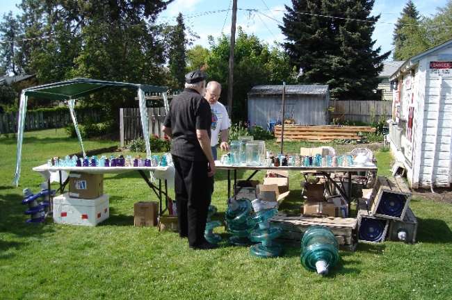 Having just knocked most of Dave Fleishman's sales stock to the ground, Jerry Buckland challenges Dave to another round of Head, Shoulders, Knees and Toes.