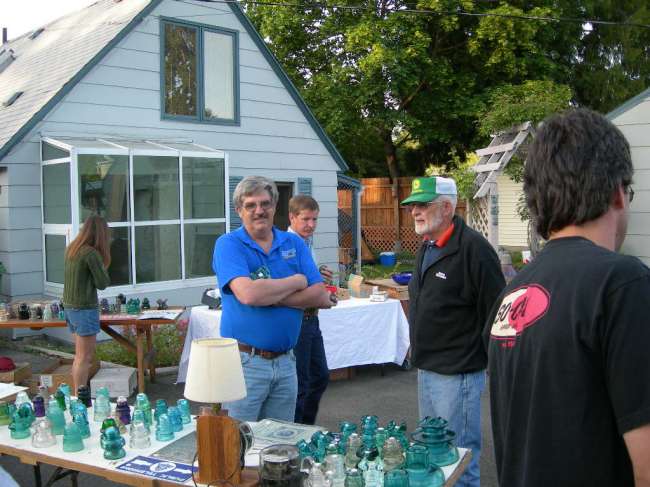 There were so many people I had never met before. Keeping track of all the names was quite daunting, because you really don't want to be calling someone by the wrong name. In this picture L-R, you have Kelli Simmons [facing away], Ron Yuhas, Dan Simmons, Glenn Drummond and Bill Burger [back to camera]. It really was quite difficult to keep up with all the insulators being set out on display. Almost as difficult as matching the right names with the faces. Thanks for the help Brent. |