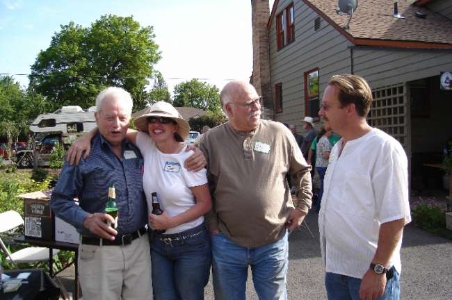 Jim Sinsley runs block as I try to stop Bill Reid from making off with my chick.