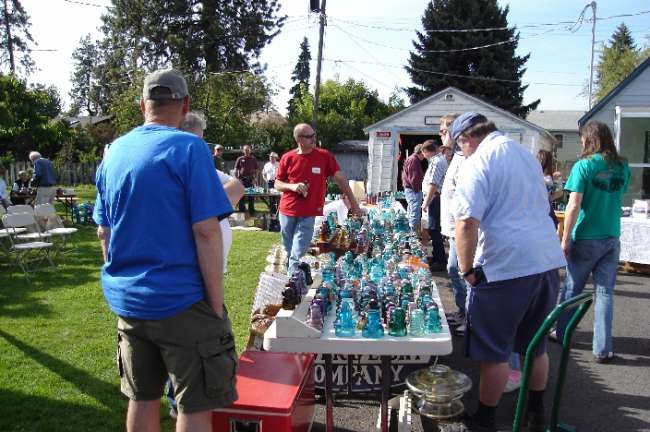 You'd think Steve Nickoloff owned the place by the way he's standing there with the beer in his hand. Actually, he had just finished chasing Jim Cunningham around to the buying side of his own table. Even the mailman took a break from his rounds to have a look at what all the loonies where doing out back. |