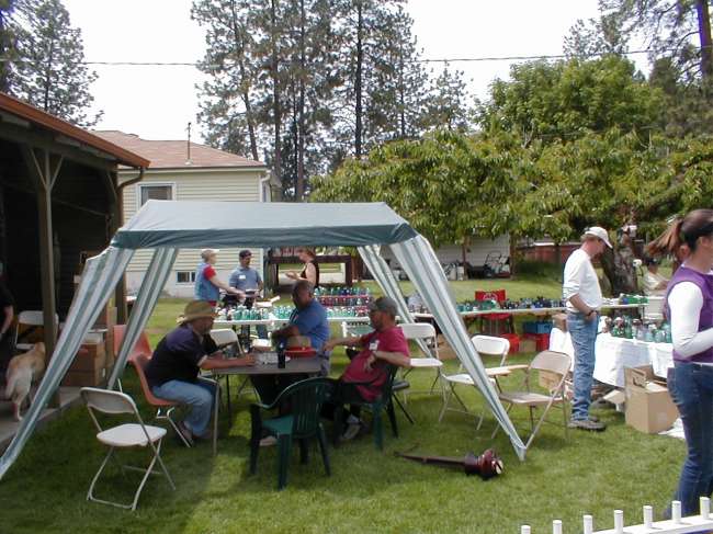 This photo shows fellow collectors enjoying a casual chat about the Texas spud meal and show host spuds Brent & Joan.